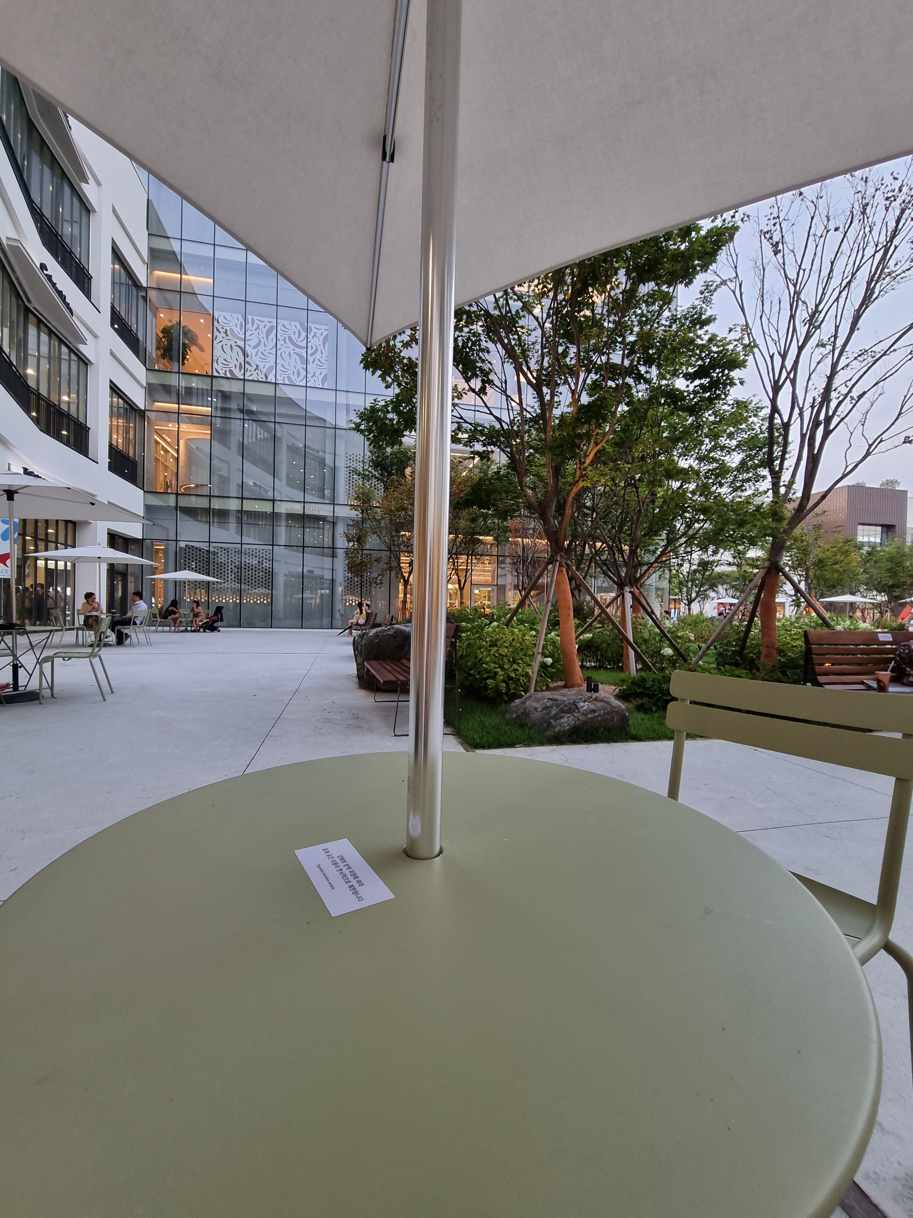 한가한 야외 테이블에 앉아서 해지는걸 지켜 보다