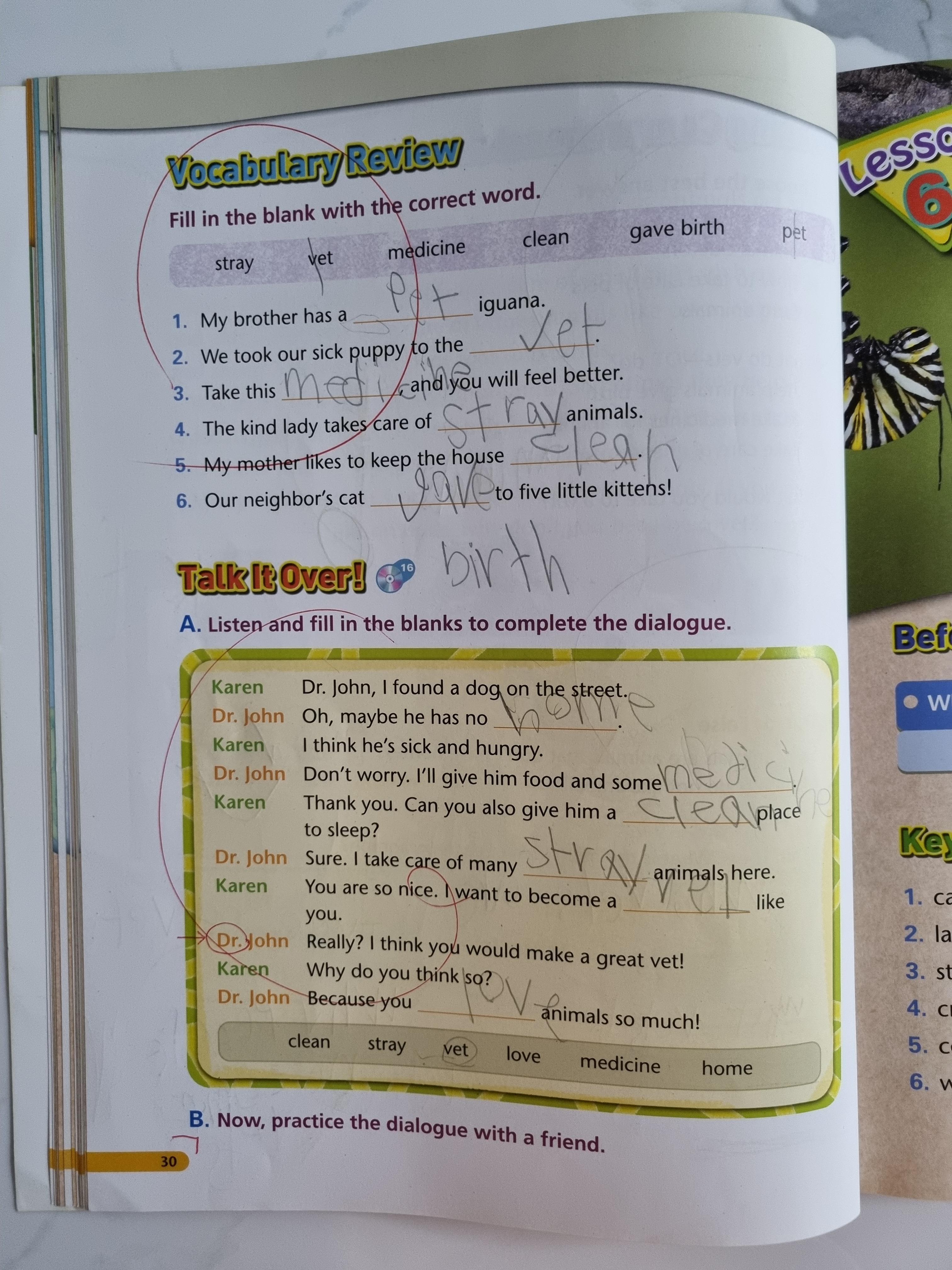 D. Vocabulary Review 를 통해