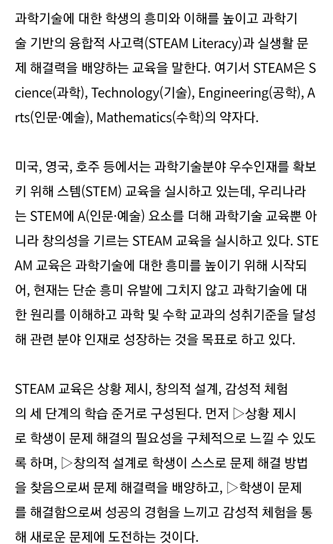 g. Steam(창의와 인성을 갖춘 미래융합인재) 교육