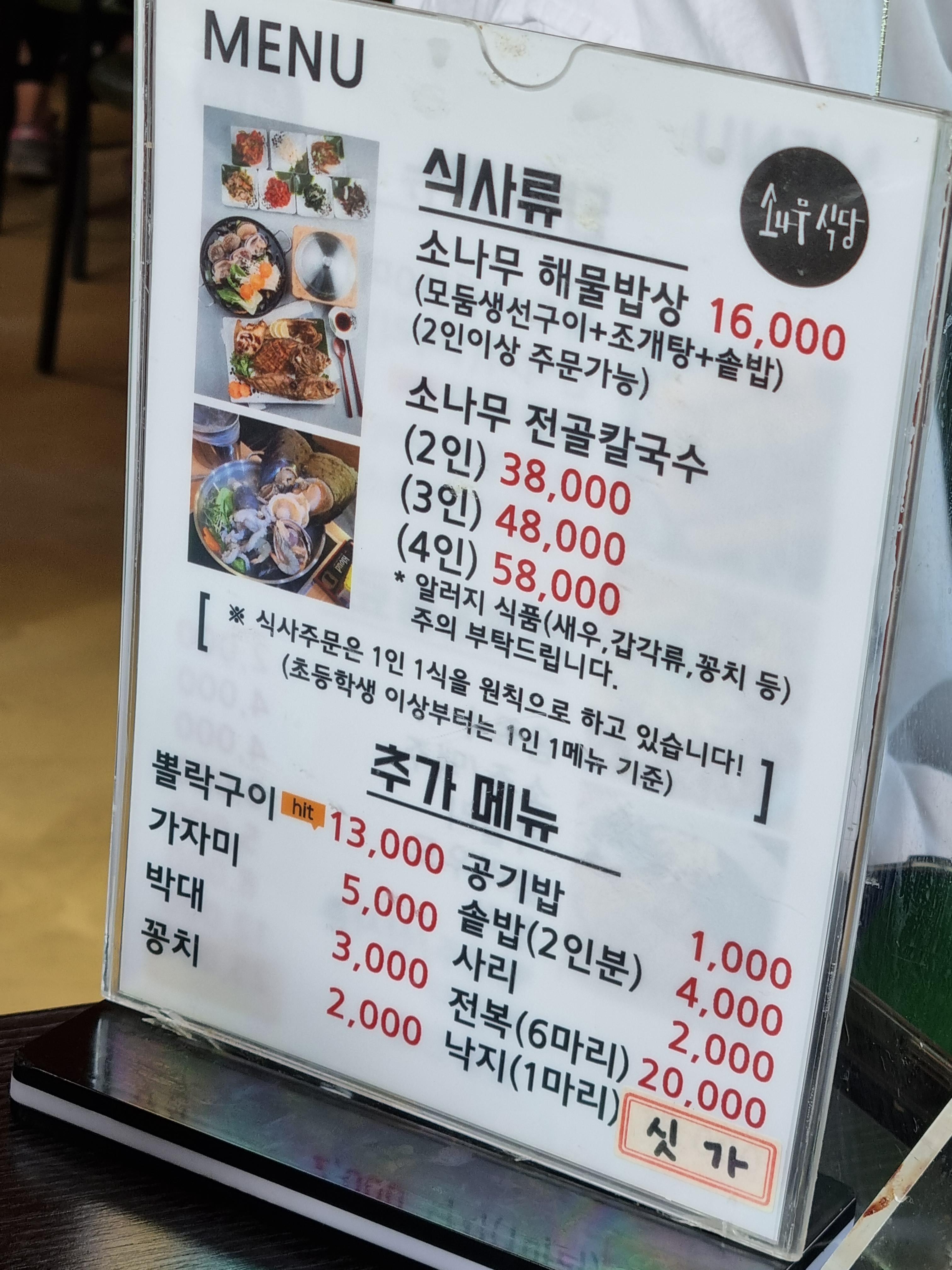 참고로 저는 해물칼국수 소나무집 다녀왔습니다.